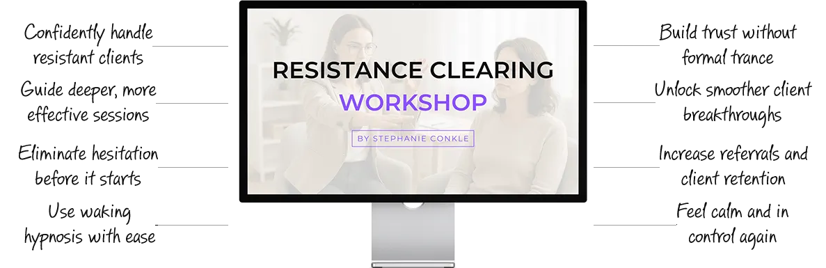 You’re getting instant access to Easy & Effective Resistance Clearing, a short and powerful training that teaches you how to dissolve client resistance using waking hypnosis and parts work, without formal trance or awkward techniques. You’ll receive:
